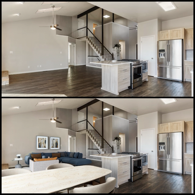 Our Virtual Staging and De-staging service digitally enhances your property's potential by adding/removing furniture, decor, and fixtures to create tailored spaces that resonate with potential buyers.
